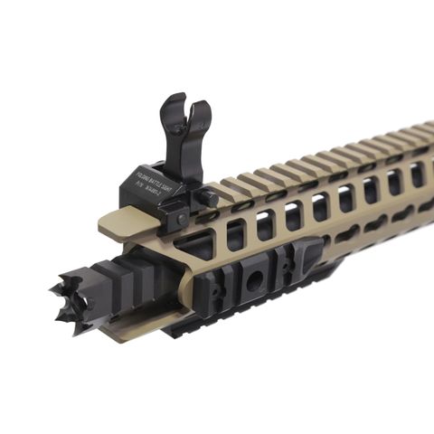 This full metal constructed AEG equipped with Training Weapon System (TWS) Keymod Dinosaur integrated receiver and rail platform.